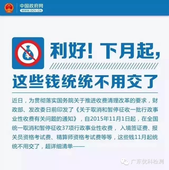 根據(jù)國(guó)家認(rèn)監(jiān)委最新發(fā)布的消息《財(cái)政部國(guó)家發(fā)展改革委關(guān)于取消和暫停征收一批行政事業(yè)性收費(fèi)有關(guān)問(wèn)題的通知》(財(cái)稅﹝2015﹞102號(hào))有關(guān)事項(xiàng),通知如下: