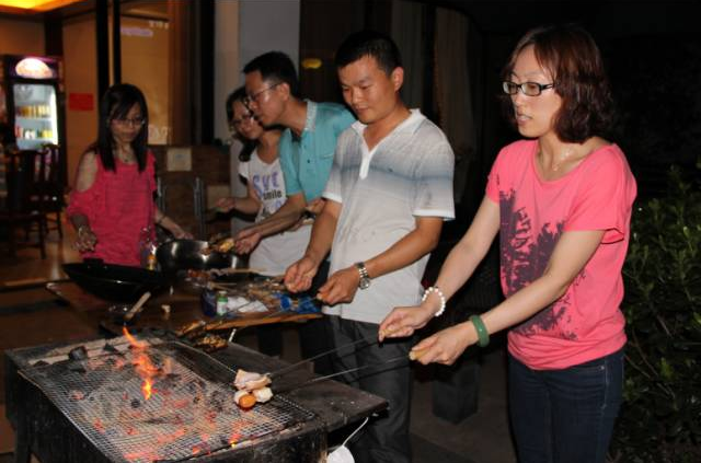 第一天晚上,大家放松心情,互相交流,聚集在一塊組織了豐富的娛樂(lè)活動(dòng),燒烤、卡拉OK、水池邊游泳、泡溫泉,邊喝邊吃邊談,各自盡情的享受這些娛樂(lè)活動(dòng)帶給我們的快樂(lè)。